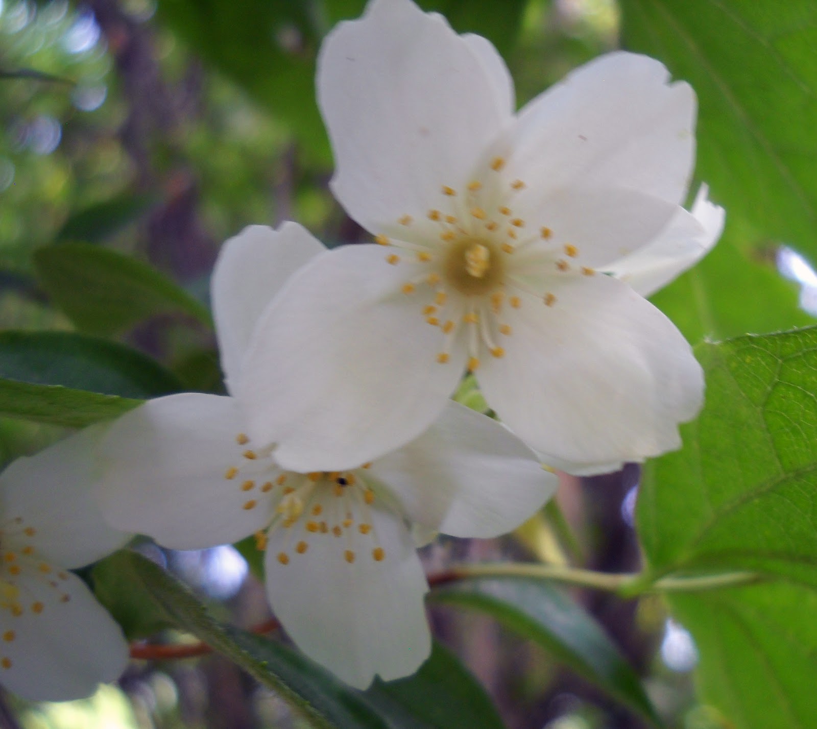 Lastly, I want to share this subdued photo of a mock orange bush. It is a very old plant and I really hate to trim it back. A neighbor did his and it died. I will try to thin out the dead wood in it and see if that will help it. The bush was large and old when I bought the property thirty five years ago. I guess I should start a new one somewhere and let it get establish.