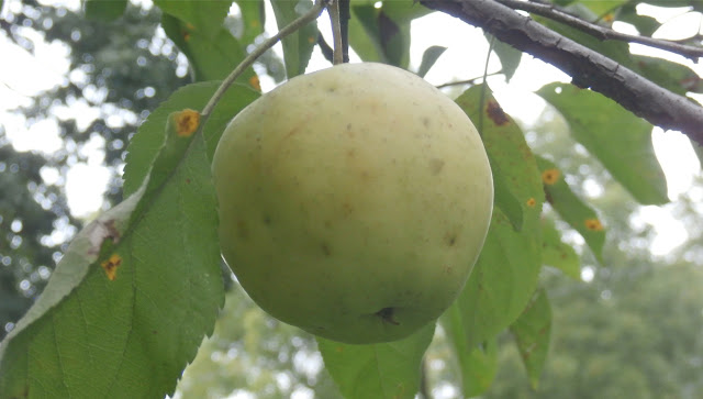 The apple crop is good again this year. I can hear them fall to the ground about any time of the day. At night when I am out with the dog it is kind of a spooky sound and it goes bonk in the night. I can see evidence of animals at night chewing into the apples for food. Squirrels do like them in the daytime but I am suspecting that the coon and the opossum is out there at night. I did have a skunk go through one time last week but they tend to stay out in the cornfield.