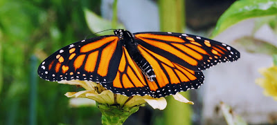 My one monarch is still out there. He flutters around me in the front yard and then shows up in the back yard later on among the sunflowers. There is no migration happening in our area so far.