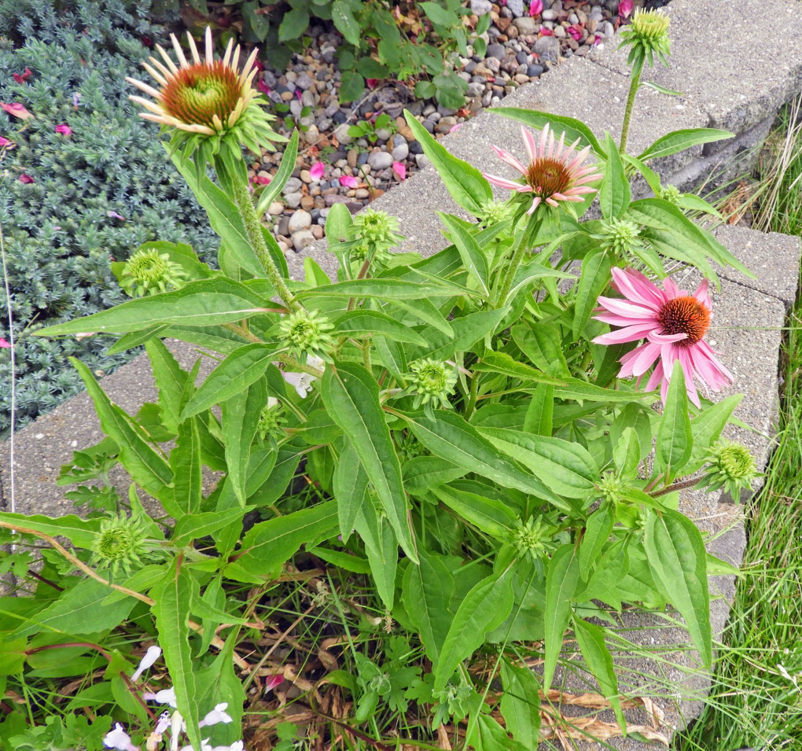 Echinacea almost blooming and beautiful yellow roses! The winter was hard on mt Echinacea...and Lupines too:(