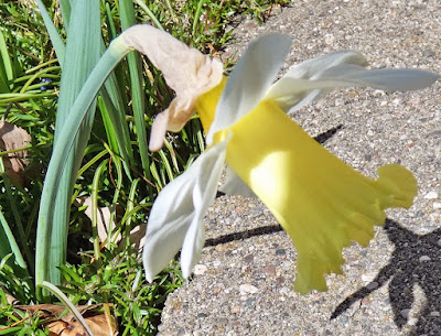 As I worked in the front flower garden I noticed my one lone daffodil was in bloom. I don't know why I have only one planted here. I guess I thought that it might multiply but it hasn't. I got too warm today working in the sun. I had to take off my long sleeved shirt down to a t-shirt and I was still too warm. I did get all my knock out roses trimmed back. It is late but our spring is late. I have dead things that I trim off as well as try to shape them a little. They are budding leaves a little so it is easier to see what is still alive from our cold winters. It is up to to 79° F. this afternoon while I write this. I had to switch on the air conditioning at noon. We have been too hot at night but I haven't turned it on until today. The weather people say our air quality is one of the worse today and I can appreciate this air conditioned air.