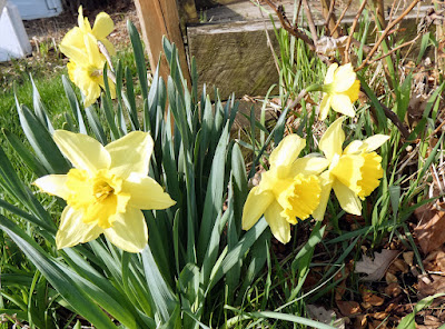 Our overnight rain storm didn't seem to damage the daffs. I think we had small hail but it didn't last for long.